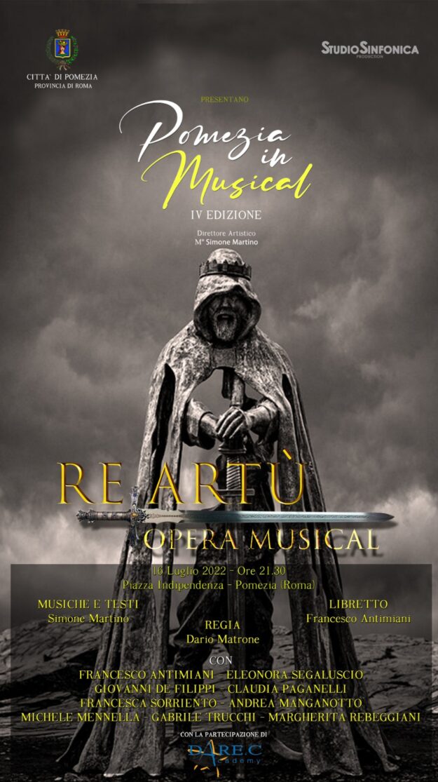 Sabato 16 Luglio alle ore 21.30: torna in Piazza Indipendenza il grande spettacolo del #PomeziaInMusical con “LA LEGENDA di RE ARTU’”, opera musical prodotta da Studio Sinfonica con la regia di Dario Matrone, musiche e testi di Simone Martino e libretto di Francesco Antimiani.