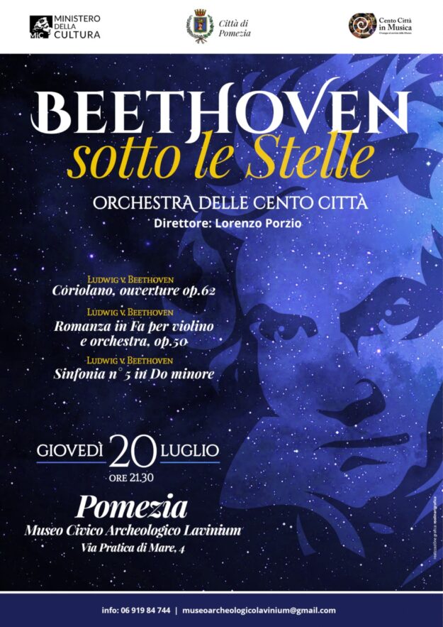E’ arrivata l’Estate pometina 2023 al Museo Civico Archeologico Lavinium! Eventi musicali e spettacoli teatrali gratuiti nella splendida cornice del giardino del Museo! Ecco il programma del mese di luglio! Si inizierà giovedì 20 luglio alle ore 21:30 con il primo grande evento: 🎼“Beethoven sotto le stelle” – Concerto con Orchestra Sinfonica delle Cento Città a cura di EuropaMusica Il programma…