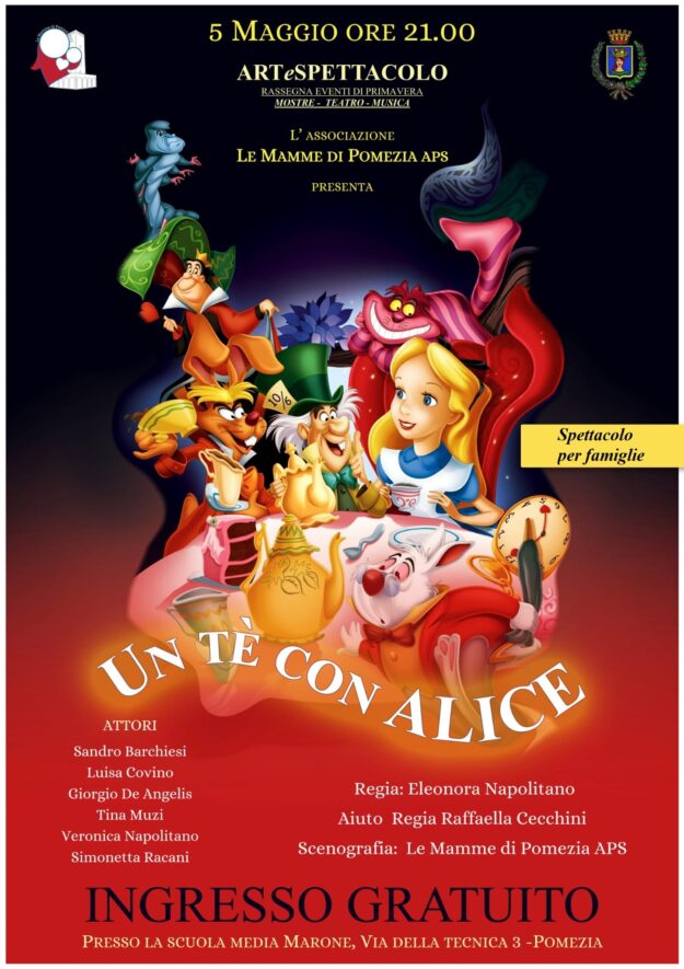 Uno spettacolo tutto da vivere! Il 5 maggio, nell’ambito della rassegna eventi di primavera “ARTeSPETTACOLO”, va in scena uno spettacolo organizzato dall’associazione Le mamme di Pomezia APS, presso la scuola media Marone. “Un tè con Alice”, questo il nome dell’evento, per la regia di Eleonora Napolitano e aiuto regia Raffaella Cecchini, vedrà coinvolti gli attori…