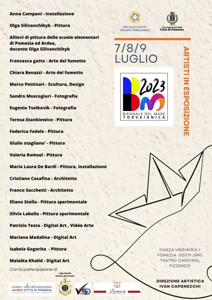 Il 7/8/9 Luglio si svolgerà l’edizione 2023 della Biennale del Mare a Torvaianica in Piazza Ungheria presso il Teatro Cardinal Pizzardo.