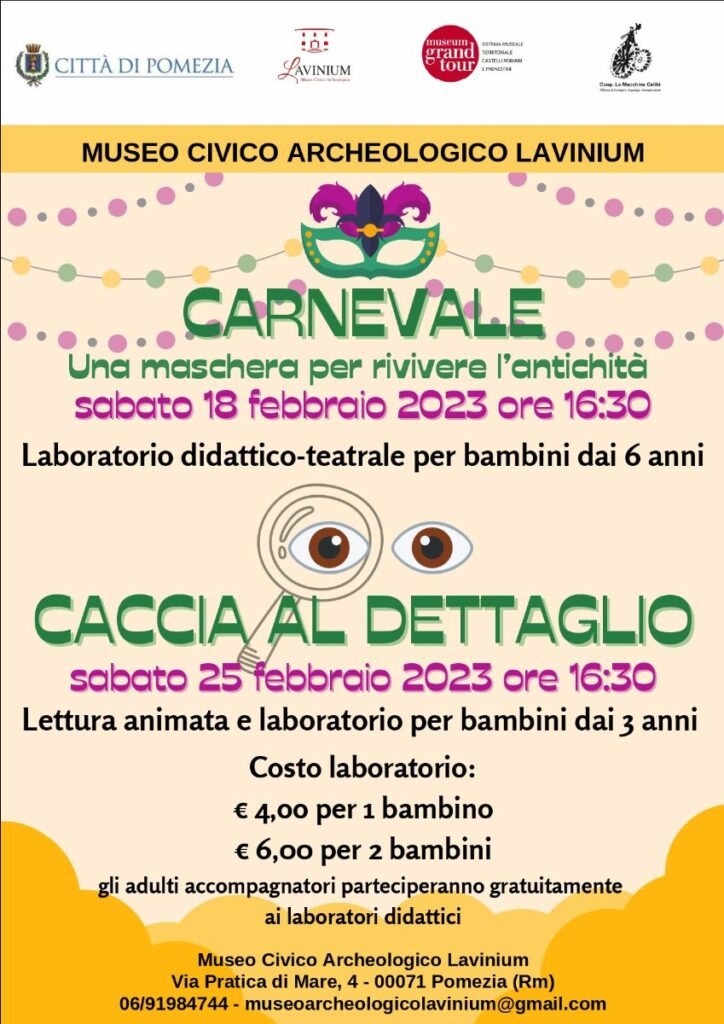 In occasione del Carnevale, il Museo Archeologico Lavinium e il Museo Città di Pomezia – Laboratorio del 900 organizzano diversi eventi per i più piccoli.