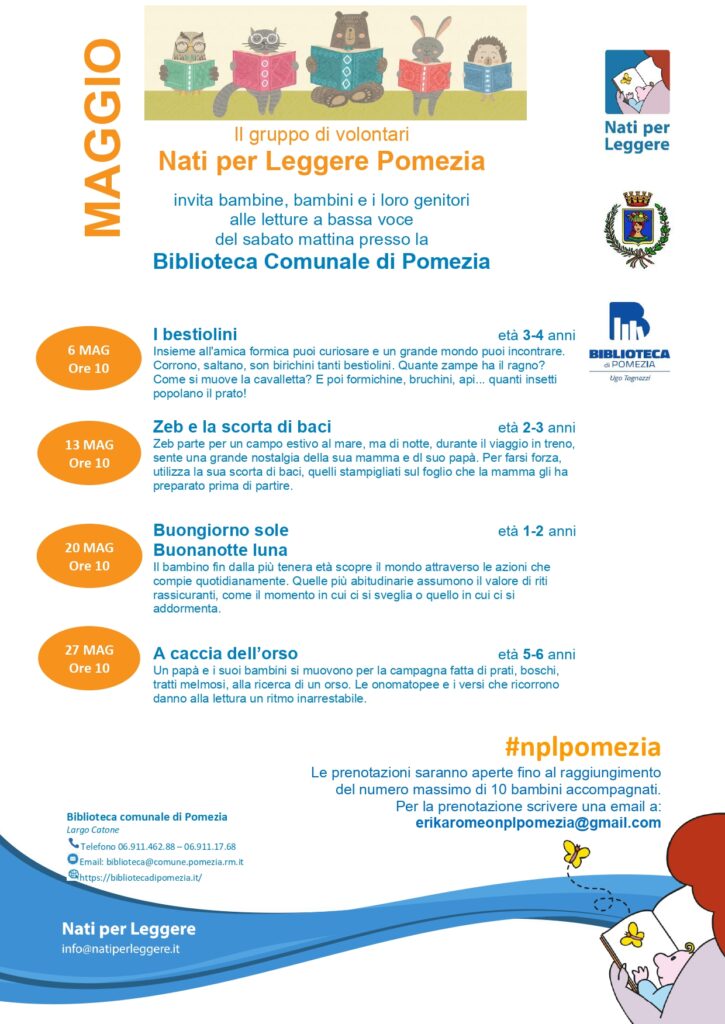 Il gruppo di volontari Nati per Leggere Pomezia invita bambine, bambini e i loro genitori alle letture a bassa voce del sabato mattina presso la Biblioteca comunale di Pomezia. Di seguito il calendario delle letture.