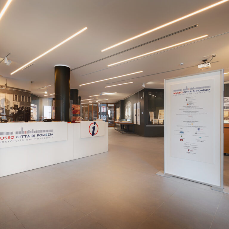 Situato nel cuore del Centro Storico, in un edificio di fondazione, Il Museo Città di Pomezia – Laboratorio del Novecento è stato aperto al pubblico il 29 ottobre 2019, in occasione dell’80° anniversario dell’inaugurazione della Città. L’istituto è uno spazio dedicato al moderno e al contemporaneo che ricostruisce e racconta – attraverso testi, immagini, documenti di archivio, oggetti e filmati d’epoca la storia di Pomezia a partire dalla sua progettazione (1 ottobre 1937) e sino al periodo della sua fortuna industriale (anni ’50 e ’60). Il racconto storico del museo si sviluppa attraverso l’Esposizione Storica Permanente, suddivisa in cinque sezioni tematiche: I) Pomezia in Cantiere; II) Città Governo e Territorio; III) Pomezia in Rassegna; IV) Popoli Fondatori; V) Industrializzazione e Sviluppo.