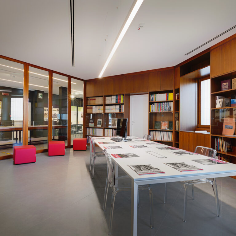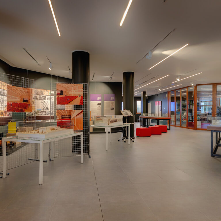 Completano lo spazio museale: un’area biblioteca con libri e riviste di settore; un’area archivio con documentazione amministrativa di proprietà comunale circoscritta al periodo; un’area laboratorio dedicata ad attività come mostre temporanee, conferenze e incontri legati ai temi dell’architettura e argomenti del Novecento.