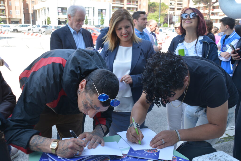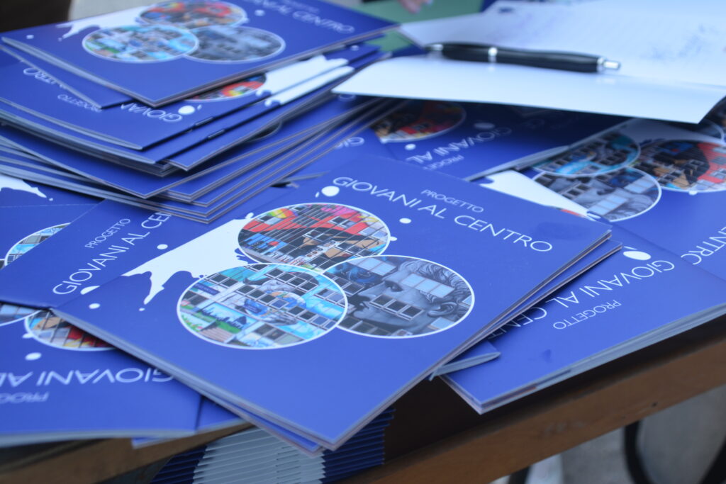 Il progetto “Giovani al Centro” ha coinvolto gli street artist Howen Poison, Steven e Noa, con la collaborazione degli studenti del Liceo Pablo Picasso e degli Istituti di Via Copernico e Largo Brodolini, per realizzare opere di riqualificazione urbana. Gli artisti, dall’esperienza pluriennale anche a livello internazionale, hanno ridato vita alla palazzina dell’Anagrafe ed omaggiato la nostra città con la loro arte realizzando un trittico sulle tre facciate della palazzina, dando così nuova vita all’edificio. Il concept delle tre opere raffigura gli elementi identitari e storici del territorio, proiettati verso una visione del futuro su cui le giovani generazioni sono invitate a riflettere e ad immedesimarsi.